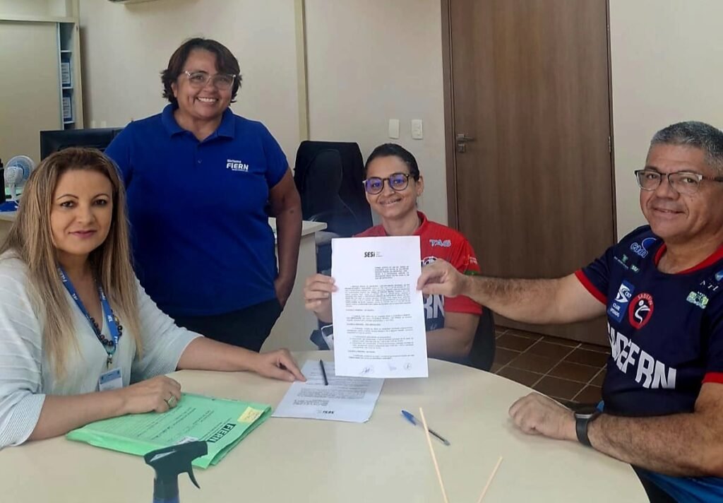 Sadef e Sesi oficializaram a renovação do convênio de parceria por mais um ano. Com o novo acordo, as piscinas do Sesi Clube, em Natal, seguirão sendo utilizadas até fevereiro de 2027 como espaço de treinamento para as equipes de natação da Sadef.